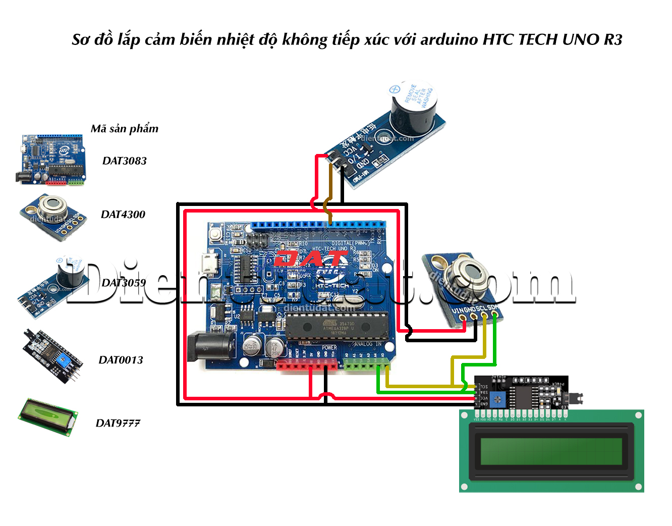 Combo Lắp Bộ Cảm Biến Nhiệt Độ Không Tiếp Xúc Hiển Thị LCD Báo Còi có chức năng đo nhiệt độ mà không cần tiếp xúc trực tiếp với bề mặt của các vật thể. Khi phát hiện nhiệt độ quá ngưỡng đã cài đặt, cảm biến sẽ truyền tín hiệu đến mạch chuẩn giao tiếp I2C và kết nối với còi báo để phát ra âm thanh.