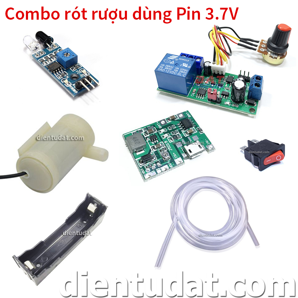 Combo Chế Bình Rót Rượu Tự Động Dùng Pin Sạc 3.7V là trọn bộ sản phẩm để chúng ta có thể tự làm bình rót rượu cảm ứng , máy rót rượu mini , chế máy rót rượu , máy rót nước tự động, rót bia tự động, rửa tay tự động , bình rót rượu điện tử hoặc nhiều ứng dụng khác.