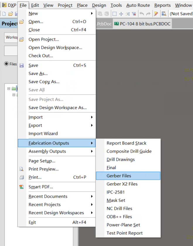 Chọn File -> Fabrication Outputs -> Gerber Files.