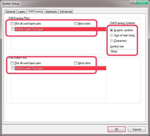Trong thẻ Drill Drawing bỏ tích tất cả các ô và chọn "Graphic symbols" ở mục "Drill Drawing Symbols"