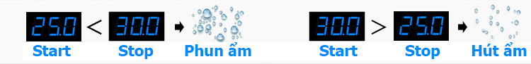 2. Thiết lập điều khiển độ ẩm: (đèn màu xanh)