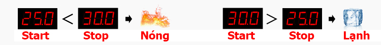 1. Thiết lập điều khiển nhiệt độ: (đèn màu đỏ)