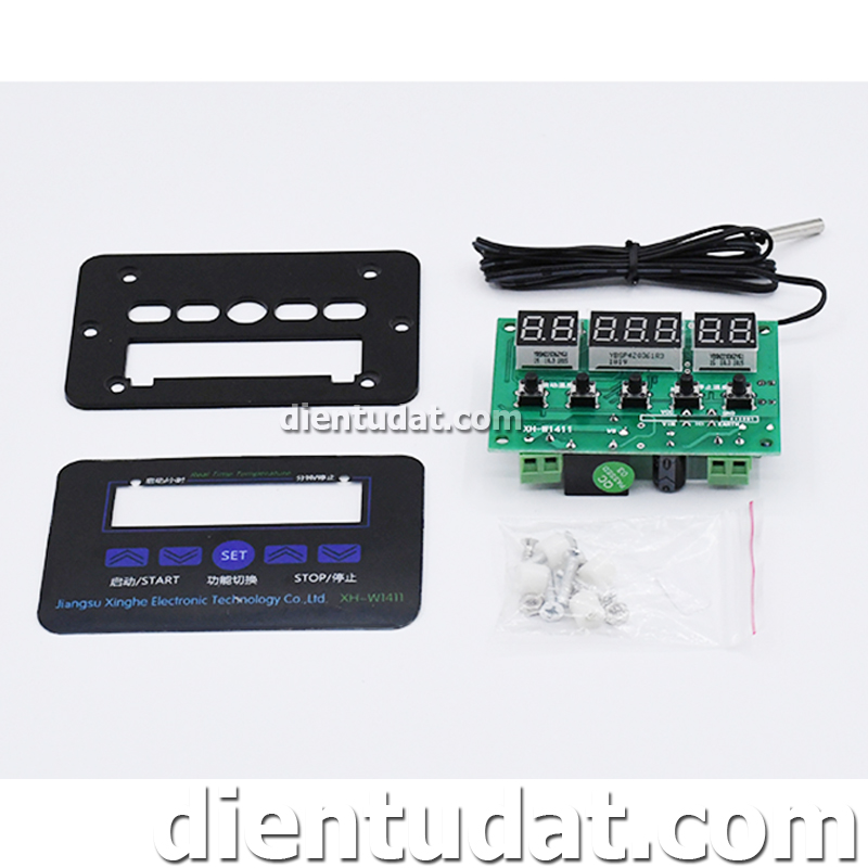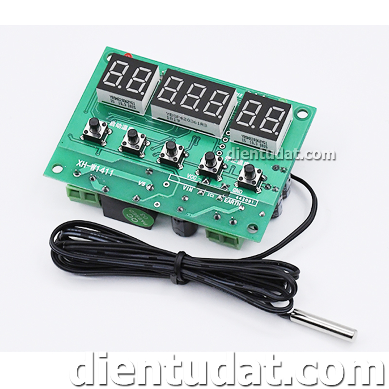 Mạch cảm biến nhiệt độ XH-W1411 có ngõ ra Relay dạng thường mở, có hiển thị nhiệt độ bằng LED 7 đoạn. Đặc biệt với module này ta có thể cài đặt mức nhiệt độ (1 mức) hoặc khoảng nhiệt độ để kích đóng ngắt relay. Nhờ tính năng hữu dụng này mà người dùng có thể dễ dàng sáng tạo nhiều ứng dụng thú vị như : máy ấp trứng, cảnh báo nhiệt độ, làm mát tự động,...