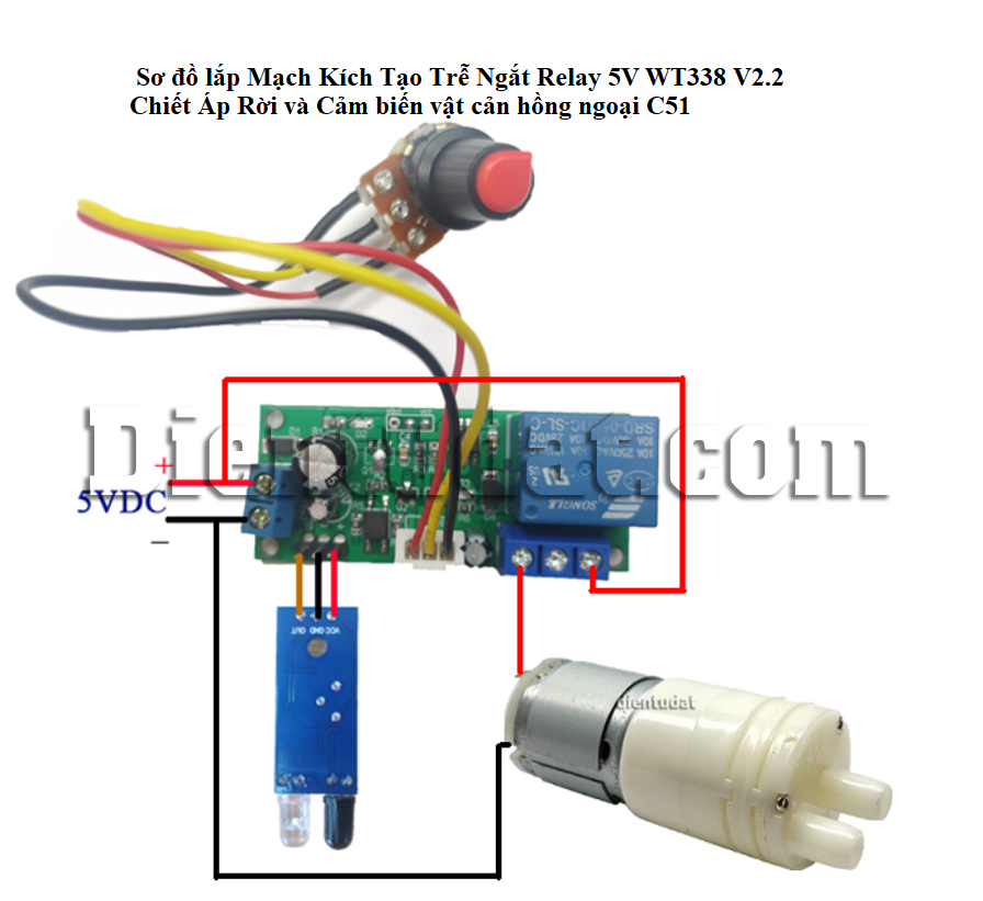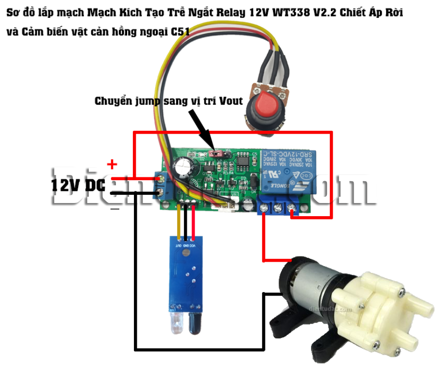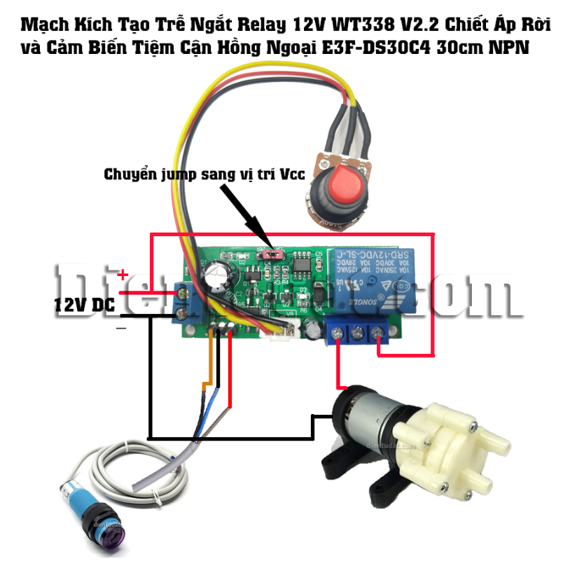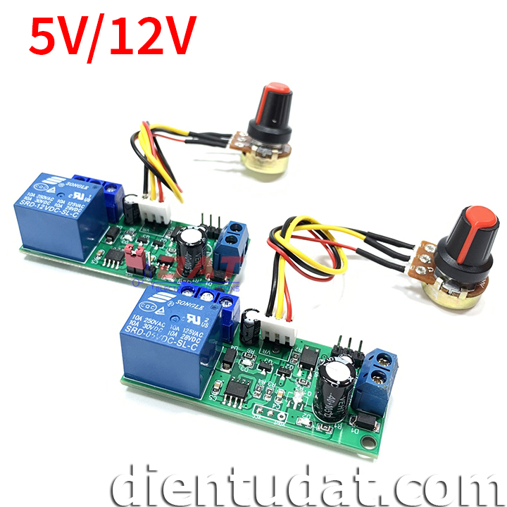 Mạch Kích Tạo Trễ Ngắt Relay 5V 12V WT338 V2.2 Chiết Áp Rời được sử dụng kết hợp với Module cảm biến có chức năng điều khiển relay đóng ngắt theo thời gian định sẵn sau khi cảm biến được kích hoạt.