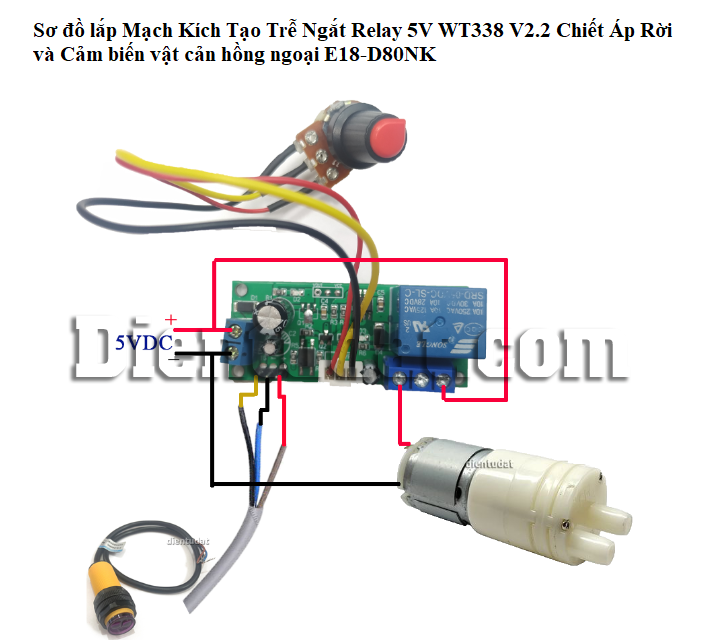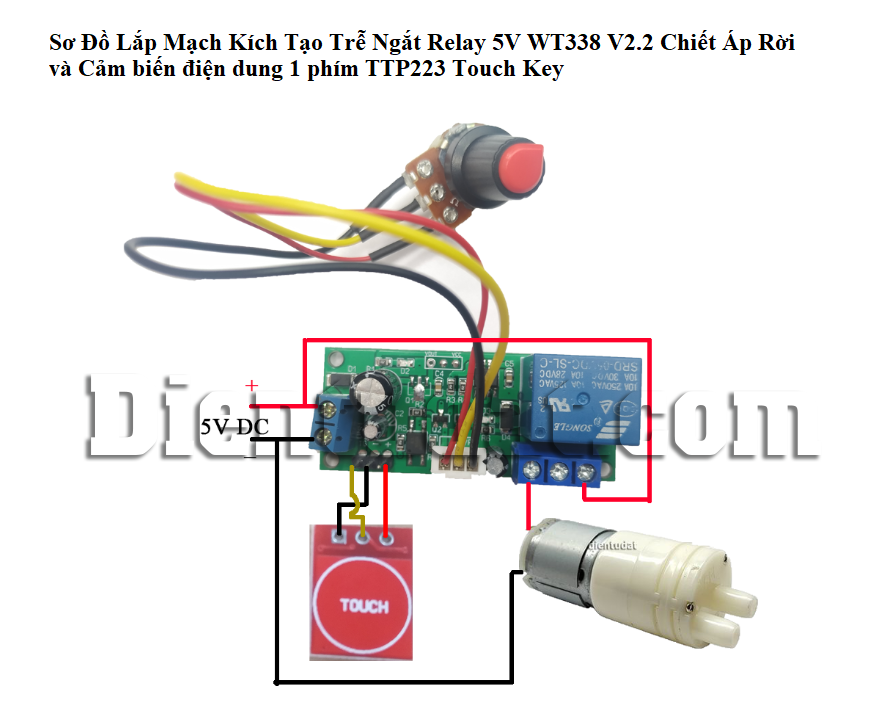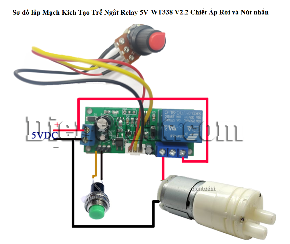 Mạch Kích Tạo Trễ Ngắt Relay 5V 12V WT338 V2.2 Chiết Áp Rời được sử dụng kết hợp với Module cảm biến có chức năng điều khiển relay đóng ngắt theo thời gian định sẵn sau khi cảm biến được kích hoạt. Mạch này sử dụng chiết áp rời để cấp nguồn cho relay và vi điều khiển, giúp giảm tải điện áp và tăng độ ổn định của mạch.