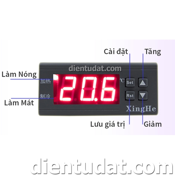Cài đặt chức năng: nhấn giữ nút Set trong 5 giây để vào chế độ cài đặt.