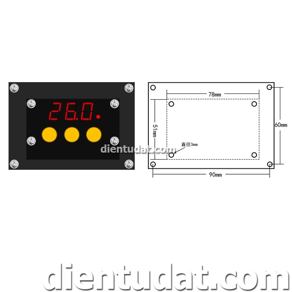 Mạch được trang bị Led 7 đoạn hiển thị giá trị đo, đèn báo chế độ hoạt động, 3 nút nhấn cài đặt cùng còi chip báo khi cài đặt hoặc báo động nhiệt độ quá cao hoặc quá thấp theo các giá trị đã thiết lập.