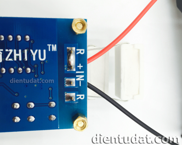 - Kết nối tải vào 2 cổng R (lưu ý lắp đúng cực "+" và "-") sau đó cấp nguồn cổng micro USB vào để mạch hoạt động