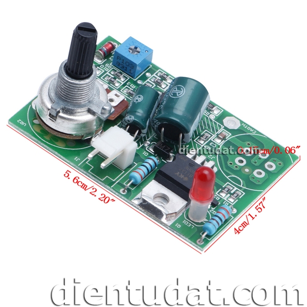 Chiết áp được tích hợp trên mạch giúp điều chỉnh tăng giảm nhiệt độ mong muốn dễ dàng. Xoay cùng chiều kim đồng hồ để điều chỉnh tăng và ngược chiều kim đồng hồ để điều chỉnh giảm nhiệt độ.