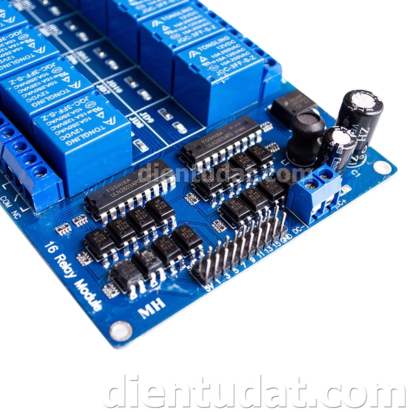 Module Relay 16 Kênh Kích Mức Thấp hoạt động tại điện áp 12VDC, mạch được thiết kế với opto cách ly bảo vệ điện áp ngõ vào và ngõ ra giúp mạch hoạt động ổn định hơn.