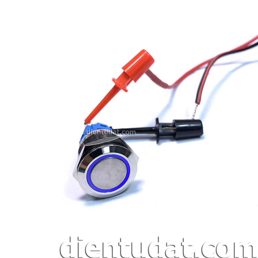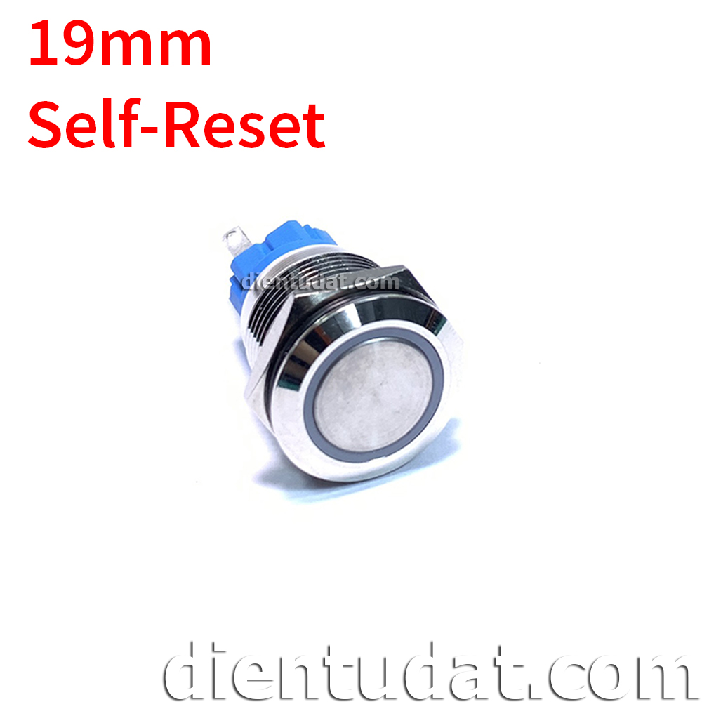 Nút Nhấn Self-Reset 19mm 5 Chân - Vòng Đèn 12V là một nút nhấn công tắc với 3 chân thường đóng (NC), thường hở (NO), chân chung (C) và 2 chân + - để cấp nguồn cho đường viền Led sáng.