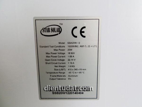 Pin năng lượng mặt trời Solar Panel 18V - 20W được thiết kế và đóng sẵn khung với kích thước 410x340mm, ngõ ra 18V với công suất 20W phù hợp với nhiều ứng dụng khác nhau.