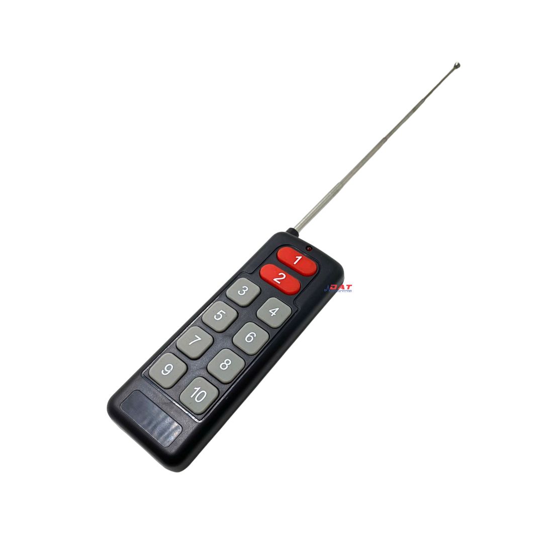 Remote RF điều khiển từ xa 10 nút với tần số hoạt động 315MHz hoặc 433MHz là thiết bị điều khiển từ xa tiện lợi và hiệu quả, phù hợp với nhiều ứng dụng khác nhau như điều khiển cửa cuốn, hệ thống chiếu sáng, nhà thông minh, và các thiết bị điện khác. Với thiết kế đơn giản, tích hợp ăng-ten kéo dài, sản phẩm đảm bảo khả năng truyền tín hiệu mạnh mẽ và ổn định trong một phạm vi rộng.