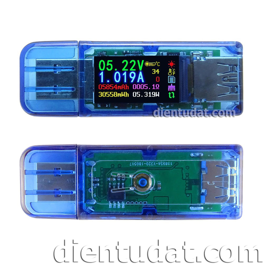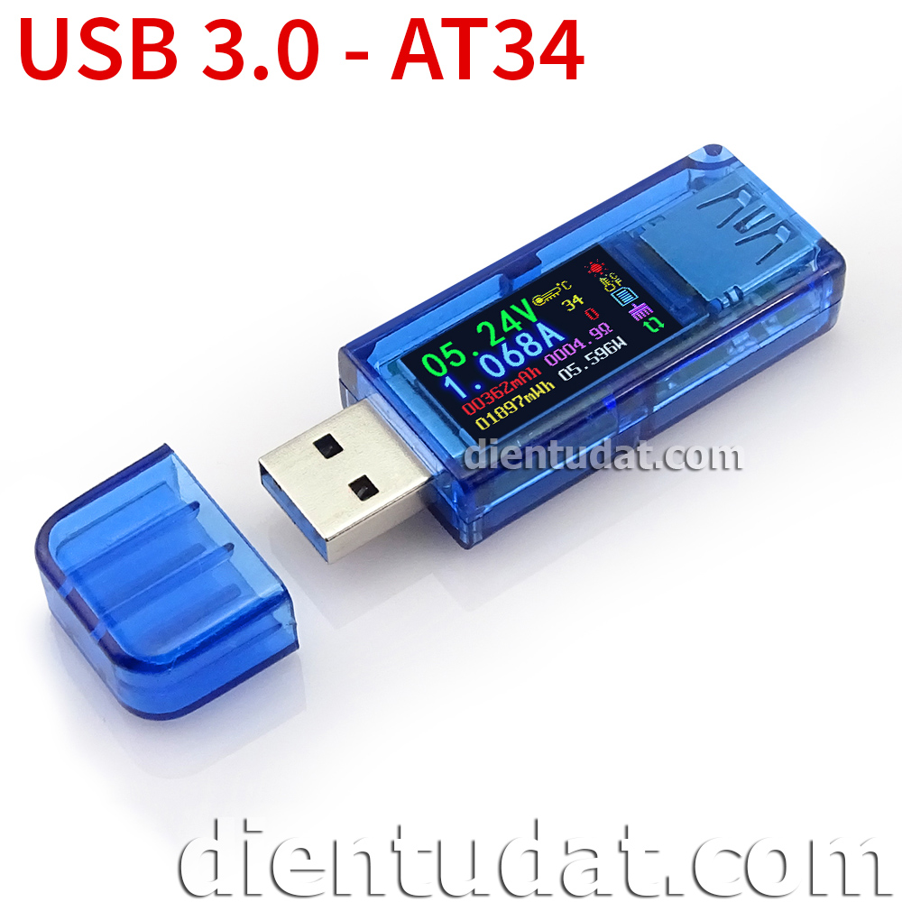 USB Tester 3.0 Đo Dòng Áp - Đo Nội Trở Tải - AT34 sử dụng màn hình LCD công nghệ IPS nhiều màu sắc độ nét cao. Có chức năng đo điện áp, dòng điện, dung lượng, năng lượng, công suất, trở kháng tải, nhiệt độ và các chỉ số khác.